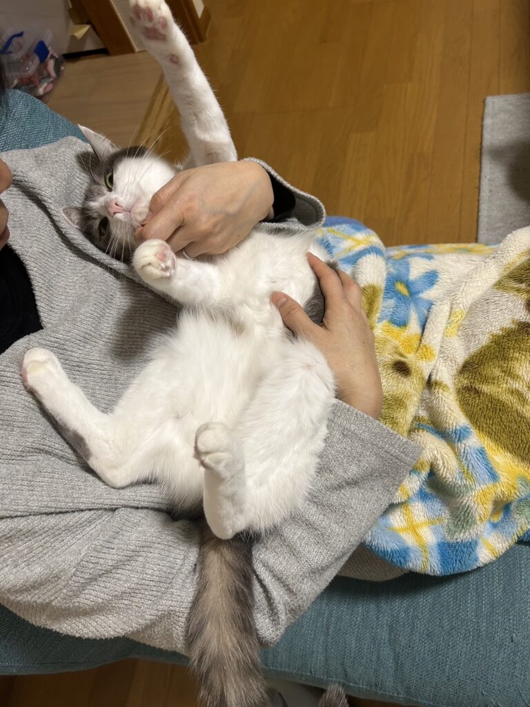 みりんは抱っこが好きだけど、少し変わってる(笑)。